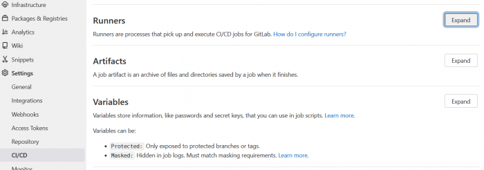 Log in op de GitLab server en in het grijze zij-menu kies Settings → CI/CD.