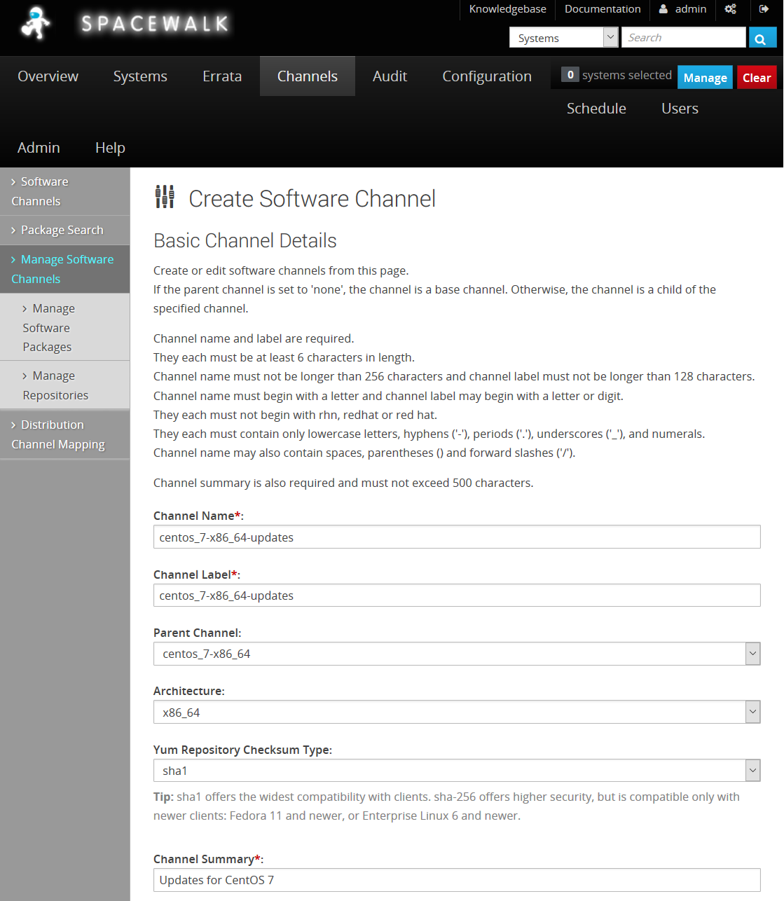 - spacewalk_channels